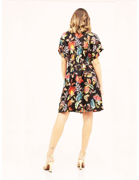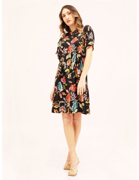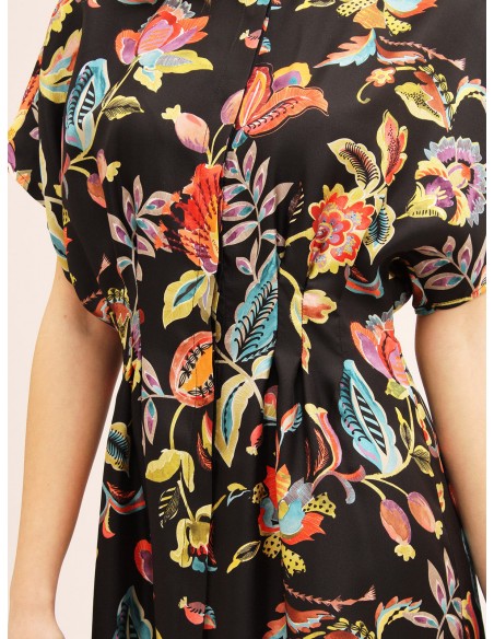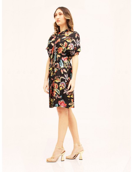 MOMONIAbito corto chemisier in seta stampata con spalla scesa effetto kimono e abbottonatura nascosta. Le pieghe intorno al giro vita conferiscono un tocco di femminilitá alla figura. Made in Italy.